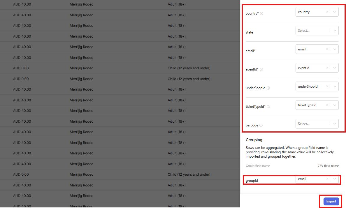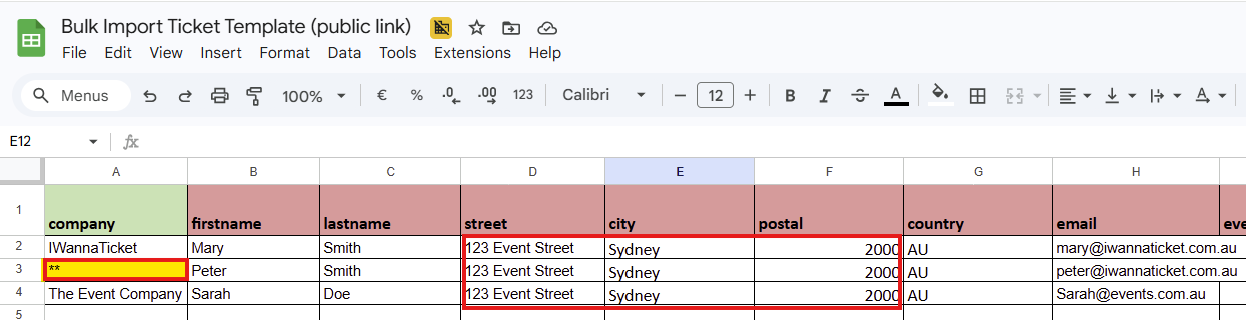 **to complete this field for a successful import. - Street, City, and Postal information were unknown, so I used the event details and made these the same for each ticket holder.