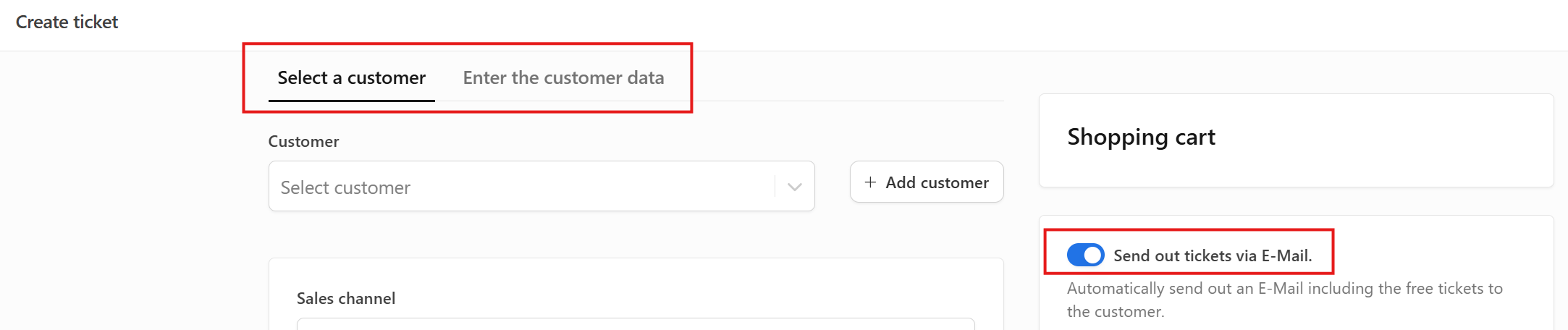 - Toggle on the option Send out tickets via E-Mail if you require a ticket to be emailed to the customer