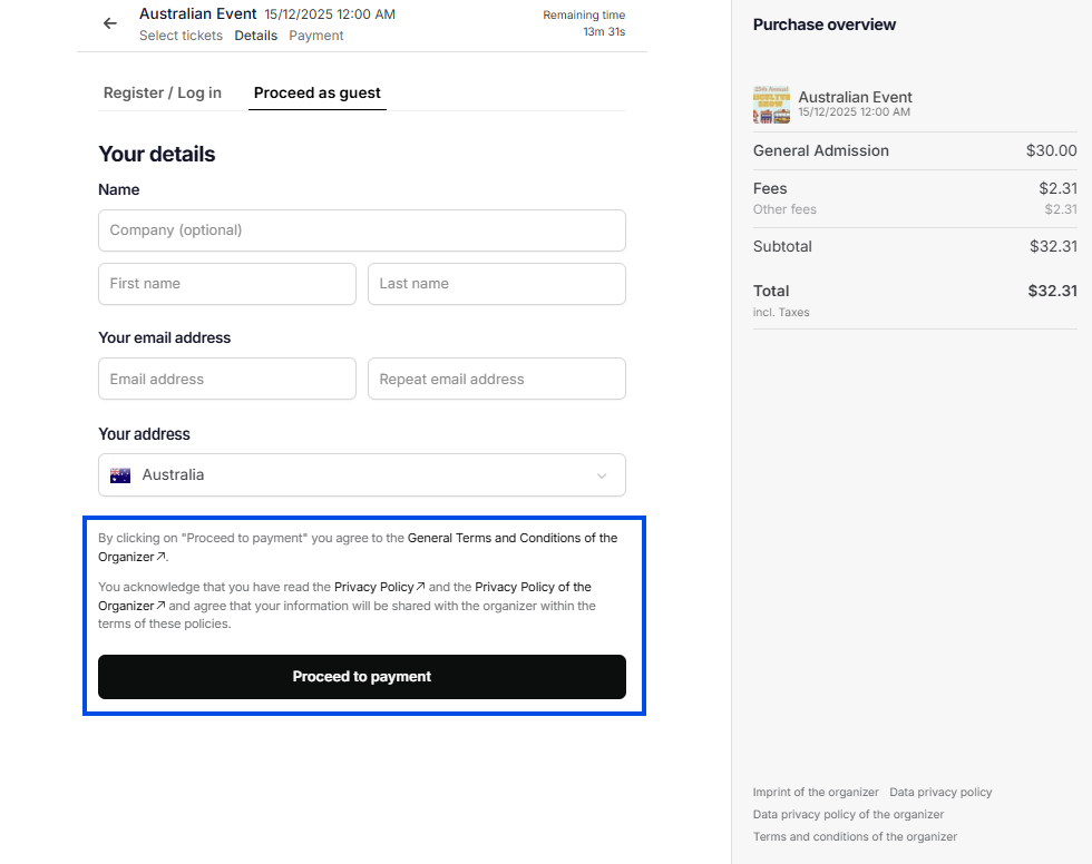 Prior to checkout, these are presented and accepted by default when the customer clicks Proceed to payment.