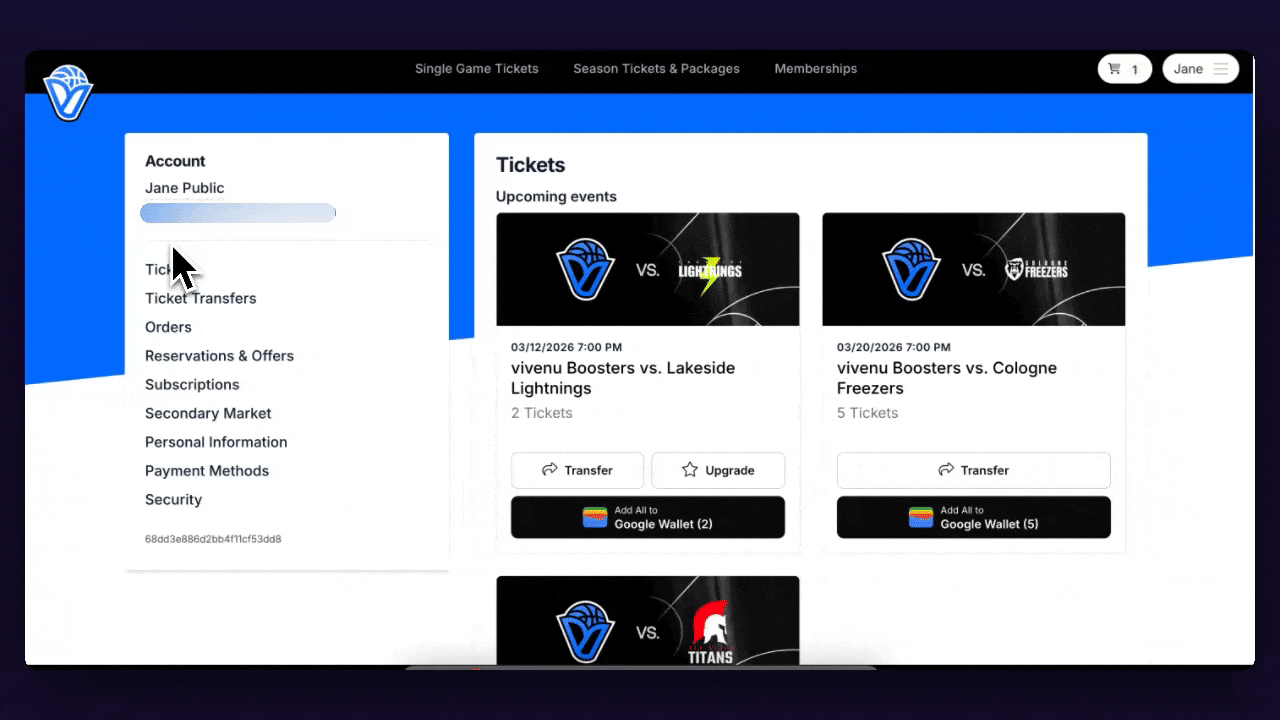 Feature Enablement Customer Accounts are mandatory for many high-value features, including: Customer Payment Methods, Subscriptions, Ticket Transfers, Ticket Upgrades