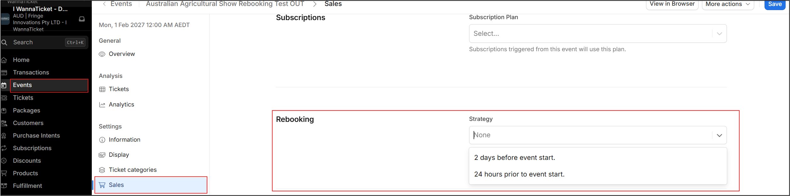 With customer self-service rebooking, you can allow your customers to rebook their tickets independently. You can set up strategies to specify which tickets can be rebooked to which other tickets or events, ensuring that no unauthorised rebookings occur.